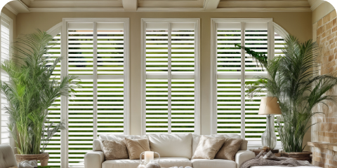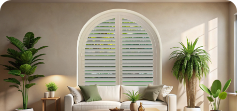 Specialty Shape Shutters are custom-crafted to fit unique windows, offering excellent light control, privacy and refined luxury. With various finishes available, they are a perfect solution to elevate any unique space.