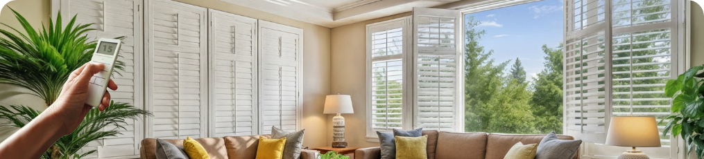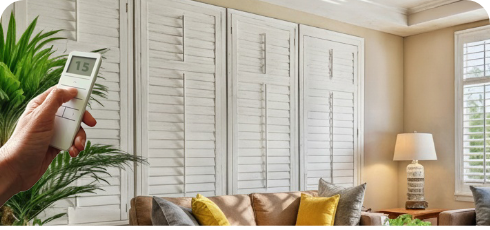 Motorized shutters offer modern, effortless control of light, privacy and ambiance for any room. Perfect for homes and offices, they can be adjusted with a remote or smart device, enhancing energy efficiency, convenience and style. Durable and customizable, motorized shutters add a sleek, sophisticated look while protecting interiors and complementing any décor, making them an ideal choice for luxury, comfort and functionality in window treatments.