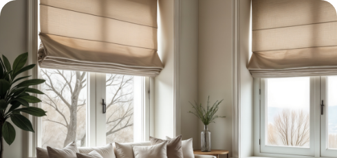 Roman Shades are a timeless and elegant window treatment. They are crafted in a variety of styles, including flat, hobbled and relaxed. They offer a sophisticated look, as well as light control and privacy.