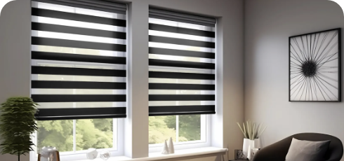 Zebra Shades feature alternating sheer and opaque fabric stripes. Simply rotate the fabric to control the amount of light and privacy while maintaining a modern, stylish look.