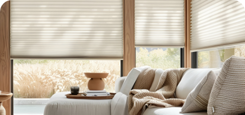Cellular/Honeycomb Shades are made from layers of fabric that form hexagonal cells. These cells trap air, providing insulation to help maintain room temperature and can support energy efficiency.