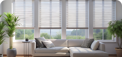 Roller Shades are sleek, modern and designed to provide both style and functionality. Made from a single piece of fabric, these shades roll up smoothly, offering light control and privacy.