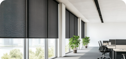 Commercial blinds offer privacy, light control, glare reduction and energy efficiency for offices, restaurants and businesses. Durable and customizable, they protect interiors and create a comfortable, productive and professional environment.